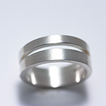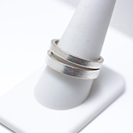 Dramatic and bold, this ring is sure to attract attention! It's made of two bands, 3mm and 4mm, that are joined together at the back. The ring is brushed to matte perfection. It's substantial yet comfortable and is very handsome.