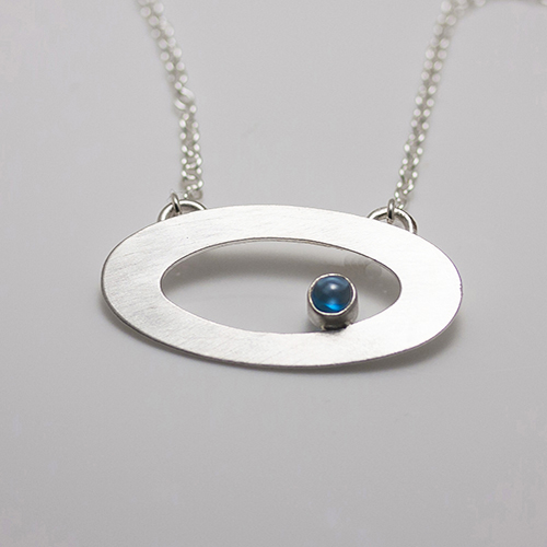 This simple, yet elegant, sterling necklace has a 5mm London blue topaz cabochon symbolizing a planet in its silvery orbit.