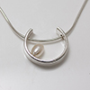This 3/4" round minimalist pendant has a hand-forged pathway of sterling silver that symbolizes timelessness - life endlessly flowing from moment to moment. Poised on the pathway is an oval freshwater pearl - which way will it go on the path? This necklace would look beautiful in the opening of a blouse or with a scoop-necked top. A classic look.