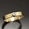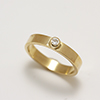 Simple and stunning, this 3mm (.10 CTW) diamond solitaire looks equally as good by itself, or worn with another ring, like a diamond band, as shown in the third photo.