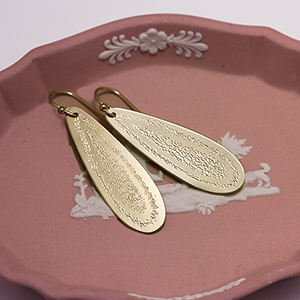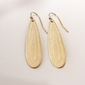 These 14k gold-filled earrings have a gracefully curved hand-embellished teardrop shape, finished off with a sculpted rounded 14k gold-filled ear wire. They would make a lovely gift!