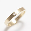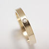 A sparkling 1.7mm diamond flush set in a 14k gold 3mm band in this striking minimalist ring. A flush setting gives an added amount of security to the stone. The ring can be worn by itself or as an accompaniment to another ring.