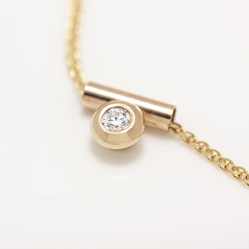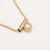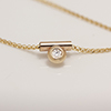 A perfect minimalist statement. A sparkling white conflict-free diamond set in a round domed bezel on a tiny tube of 14k gold!