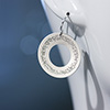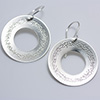 These hoops are 1" wide with a small cutout circle and have an interesting oxidized pinpoint wreath embellishment that elevates their style. They are very slightly concave. The ear wires are sterling silver.