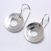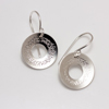 These hoops are 5/8" wide with a small cutout circle and have an interesting pinpoint wreath embellishment that elevates their style. They are very slightly concave. The ear wires are sterling silver.