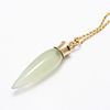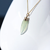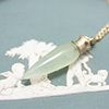 A lovely minimalist statement. A luminous, gracefully shaped celadon green serpentine bullet point with a hand-forged topper of 14k gold!
