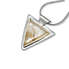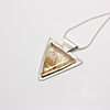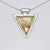 A lovely statement in gold. A hand-forged triangle setting of 14k gold surrounds this incredible natural golden rutilated quartz pendant! Sterling 18" snake chain adds the perfect touch.