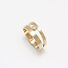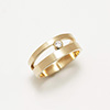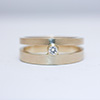 This brushed matte 14k yellow gold ring bears a 3mm (.1 ct) diamond in a 14k gold setting held in its orbit between two 14k gold bands.