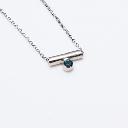 14K White Gold Maine Blue Tourmaline Tube Pendant Necklace